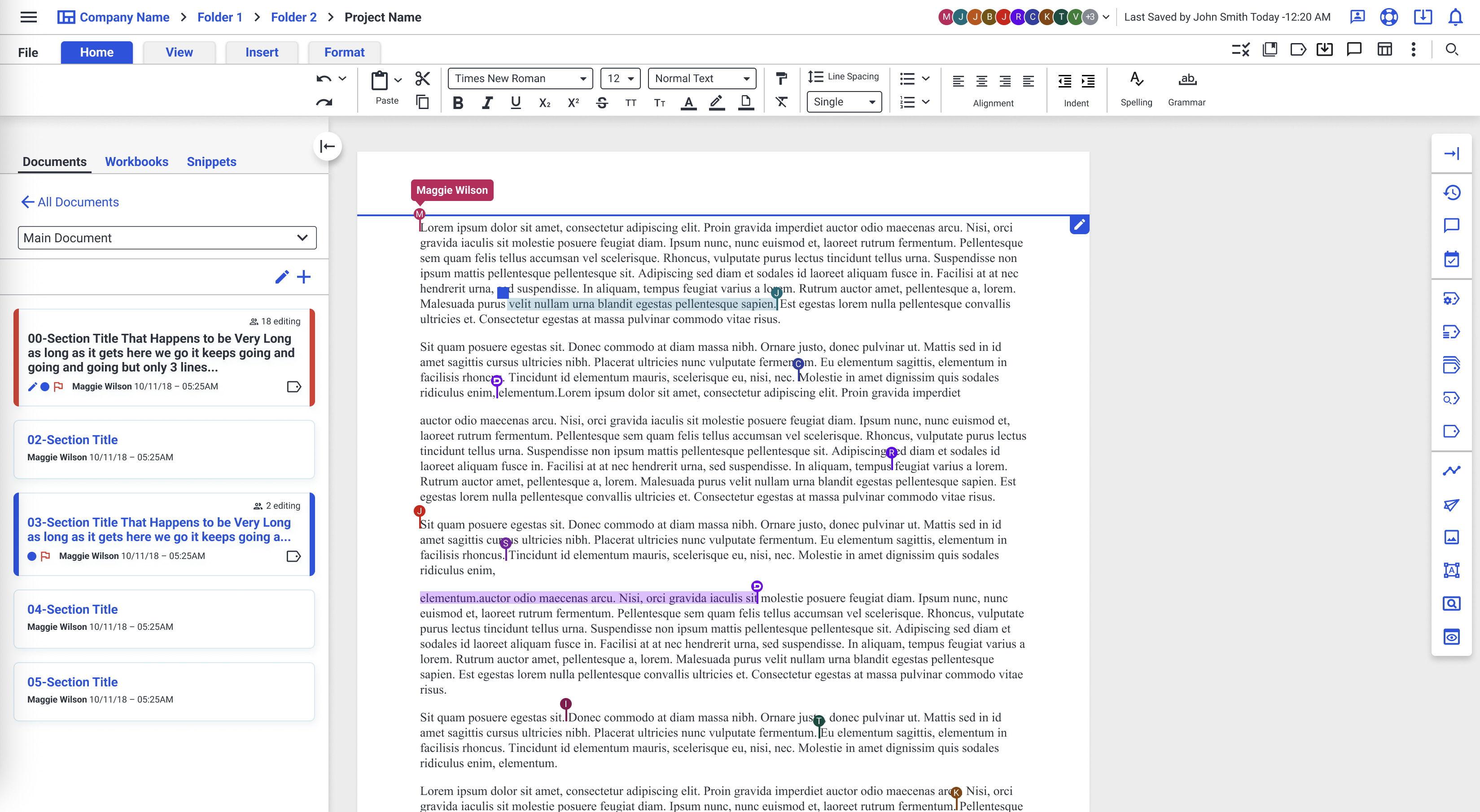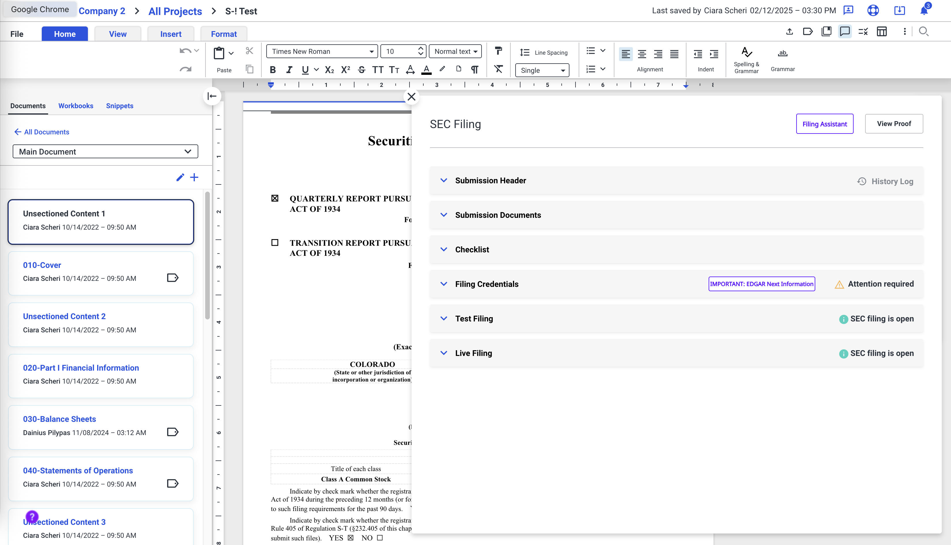 Many of the documents that clients compile require various users to add content, edit, review, and apply XBRL tagging. Due to restrictive timelines, the product must handle multiple users in the document at a time.