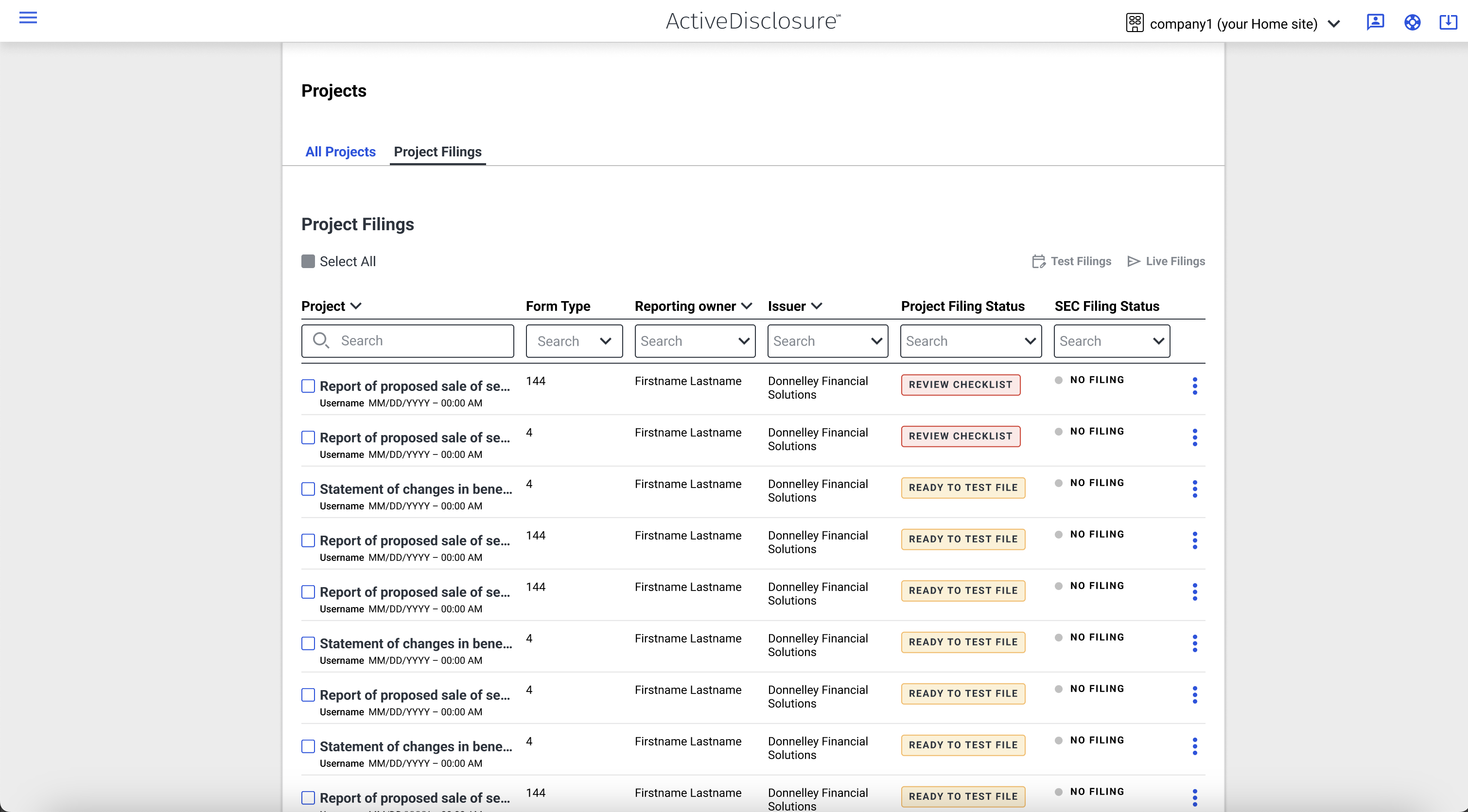 Building off an existing page design, create a tabular dashboard highlighting statuses, project type and name among other things. Leverage filters for users to facet their search by status to assist them in what is ready for a bulk filing.