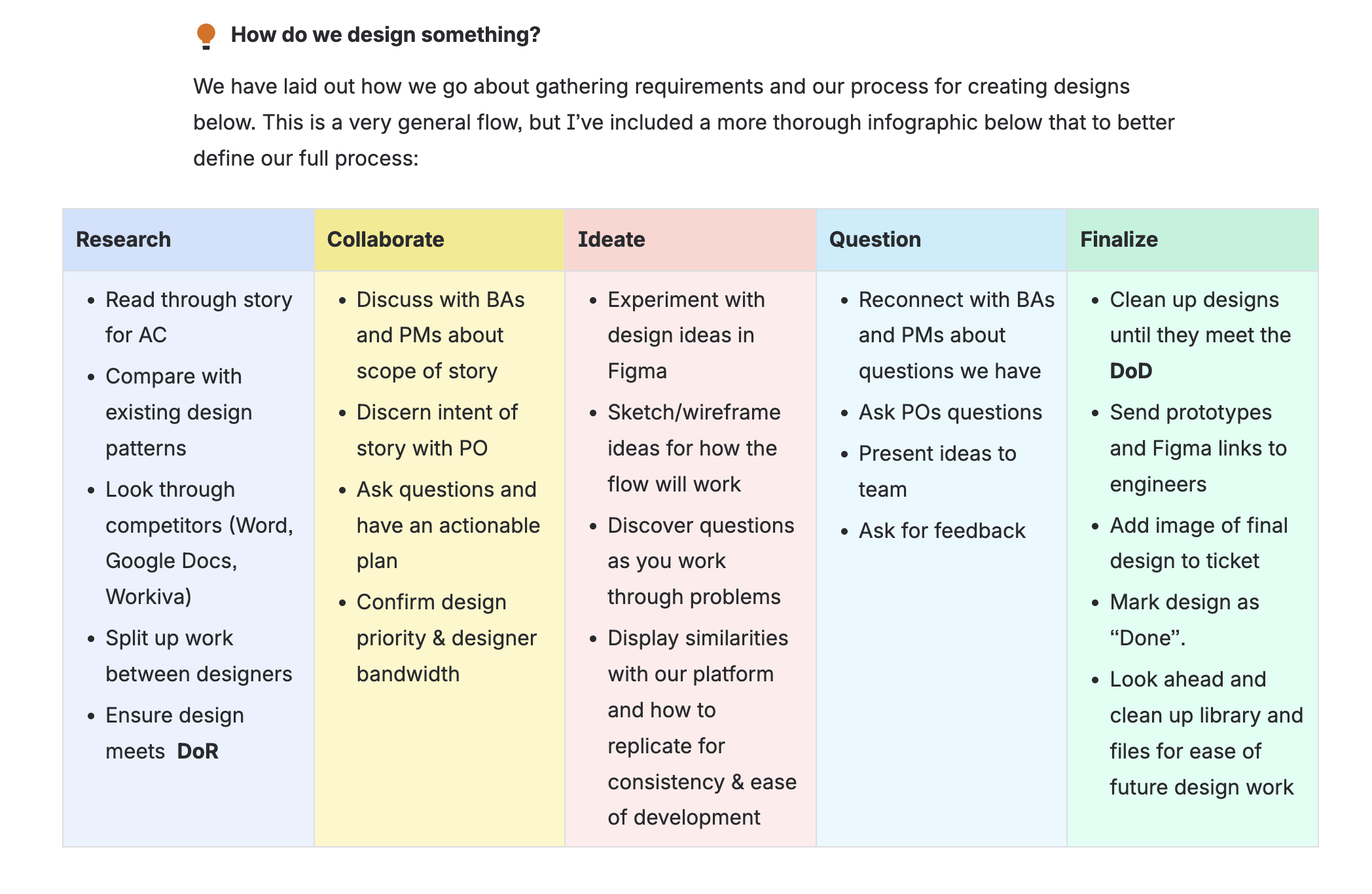 While the existing structure of our product pod helped set up our team for basic design team operations, we could do more to make our working process more efficient.